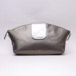 Big Pouch, la grande pochette à porter à la main, en cuir souple metallisé gris souris et argent.