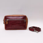 Pratique, élégante et pensée pour tous. En cuir effet croco bordeaux et camel.